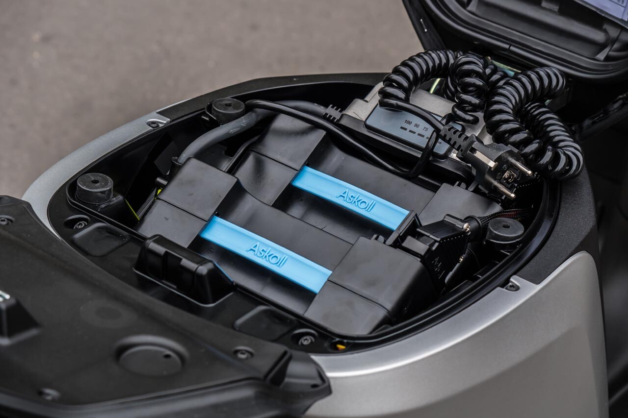 Der Roller verfügt über zwei herausnehmbare Lithium-Akkus mit einer Reichweite von 71 km.