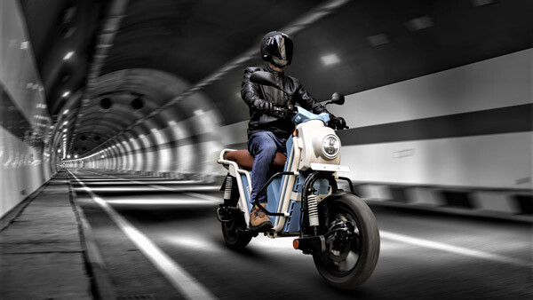 Der Moped hat einen herausnehmbaren 2.3 kWh Lithium-Akku mit einer Reichweite von 100 km.