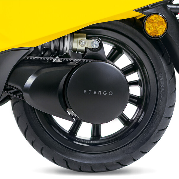 Der Roller verfügt über einen leistungsstarken 6’000 Watt Elektromotor mit 135 Nm Drehmoment für eine Beschleunigung von 0 bis 45 km/h in 3.9 Sekunden. Der Antriebsstrang ist so optimiert, dass er 90% Effizienz erreicht, was zu einem geringen Stromverbrauch bei maximaler Leistung führt. Der Antriebsstrang ist darauf ausgelegt, sofortiges Volldrehmoment ab null zu liefern, was die schnellstmögliche Beschleunigung ermöglicht.