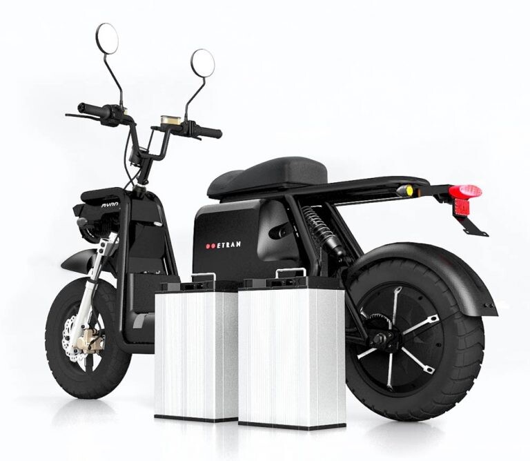 Das Moped verfügt über zwei leistungsstarke, herausnehmbare Mangan (LiMn2O4) Lithiumbatterien, die eine Reichweite von 180 km bieten.
