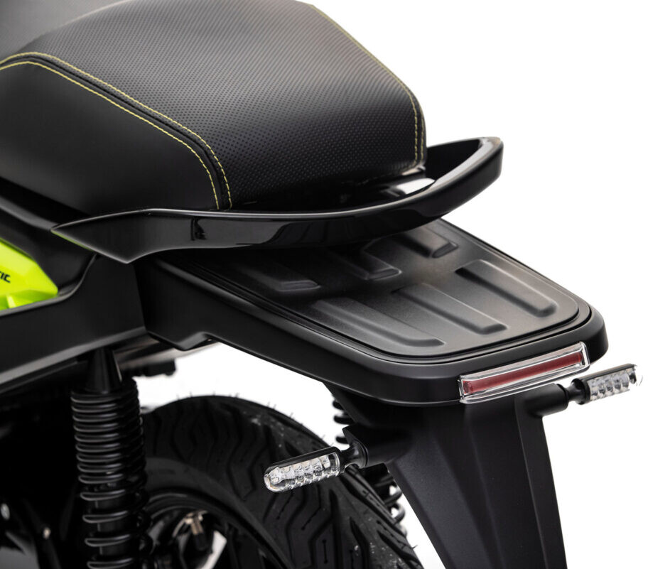Der Roller verfügt über zwei hochmoderne, herausnehmbare Lithium-Batterien mit einer Kapazität von 2200 Wh pro Batterie (insgesamt 4400 Wh).