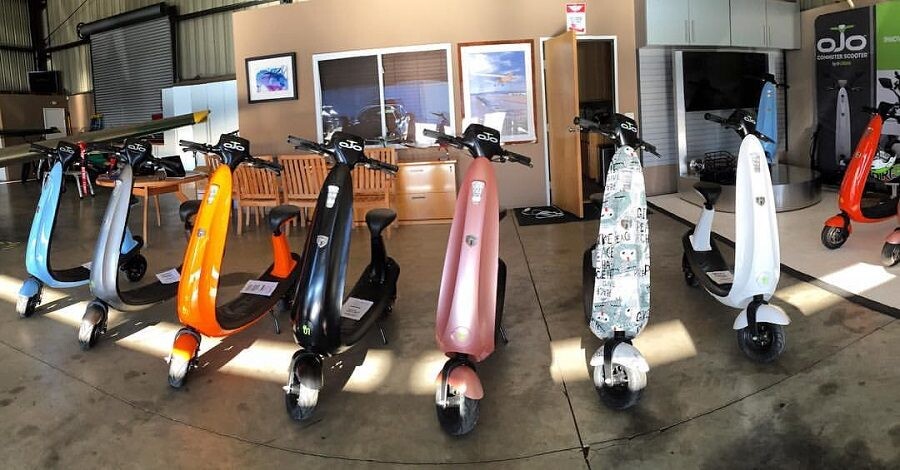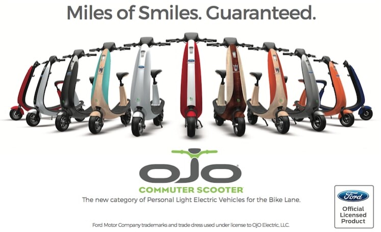 Der Ford OjO elektrische Pendler-Roller wurde ursprünglich von dem kalifornischen E-Scooter-Startup OjO Electric entwickelt und wurde 2017 von dem amerikanischen Automobilhersteller Ford übernommen, um eine intelligente Mobilitätsoption hinzuzufügen. Der Ford OjO Commuter Scooter ist leicht (30 kg), und Ford hat angekündigt, dass er an einer faltbaren Version arbeitet. Der Roller ist für schnelles und effizientes Pendeln in belebten Städten und auf Unternehmensgeländen konzipiert.