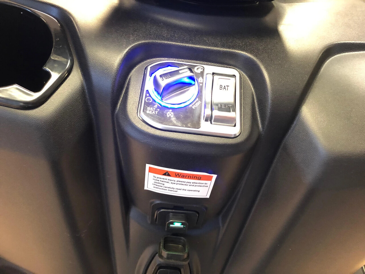Der Roller verfügt über USB-Ladeanschlüsse für ein Mobiltelefon und einen Rückwärtsgang für einfaches Parken.