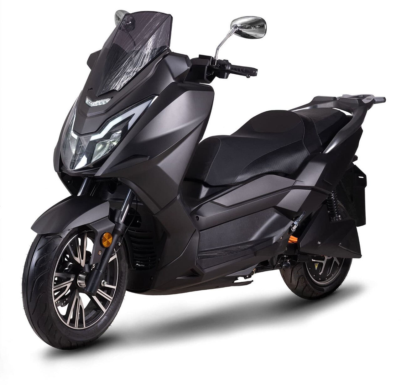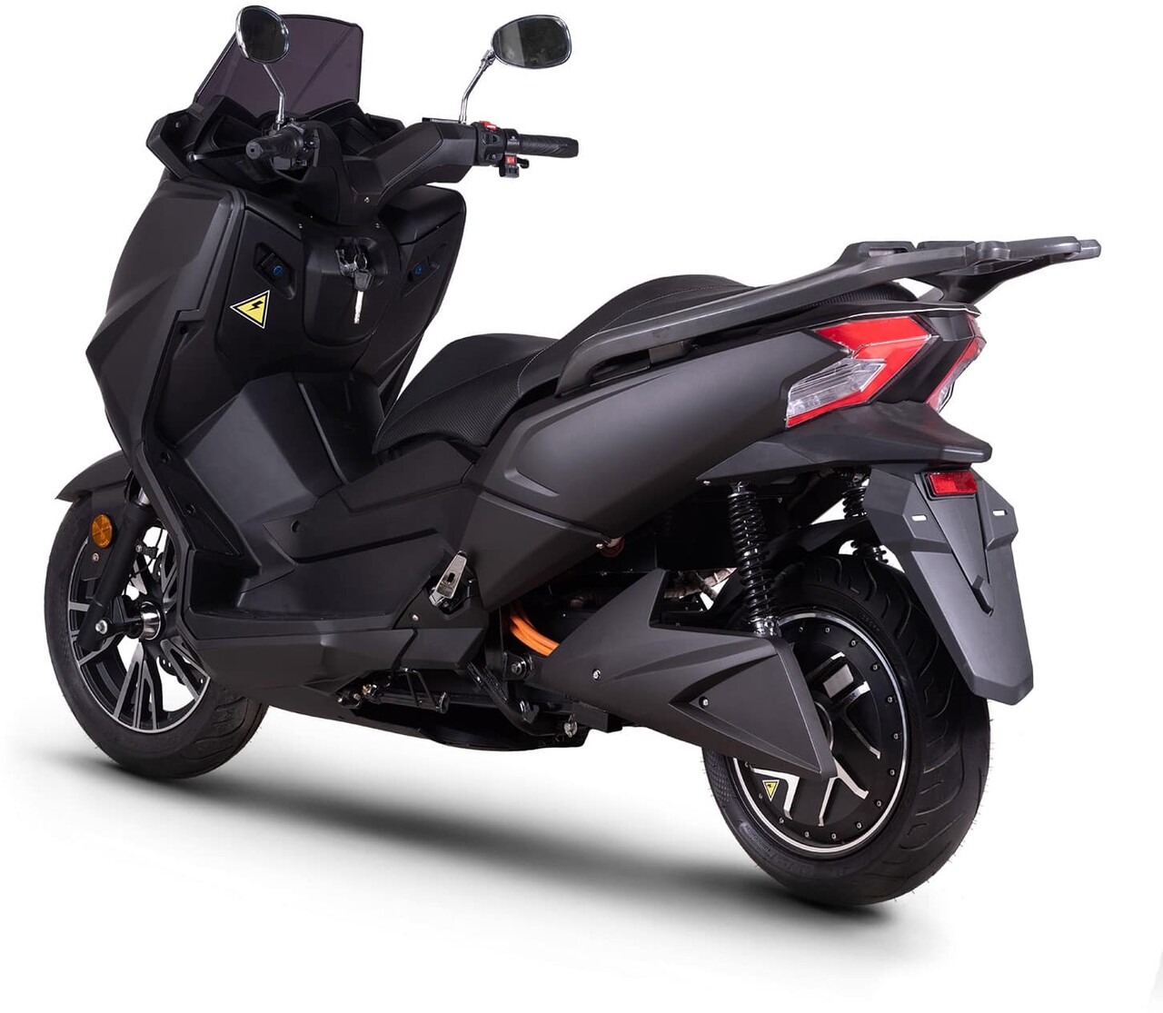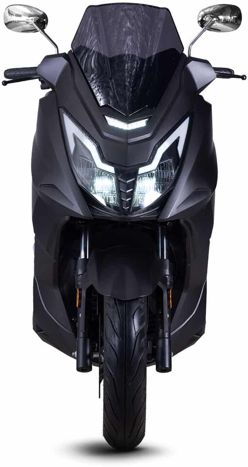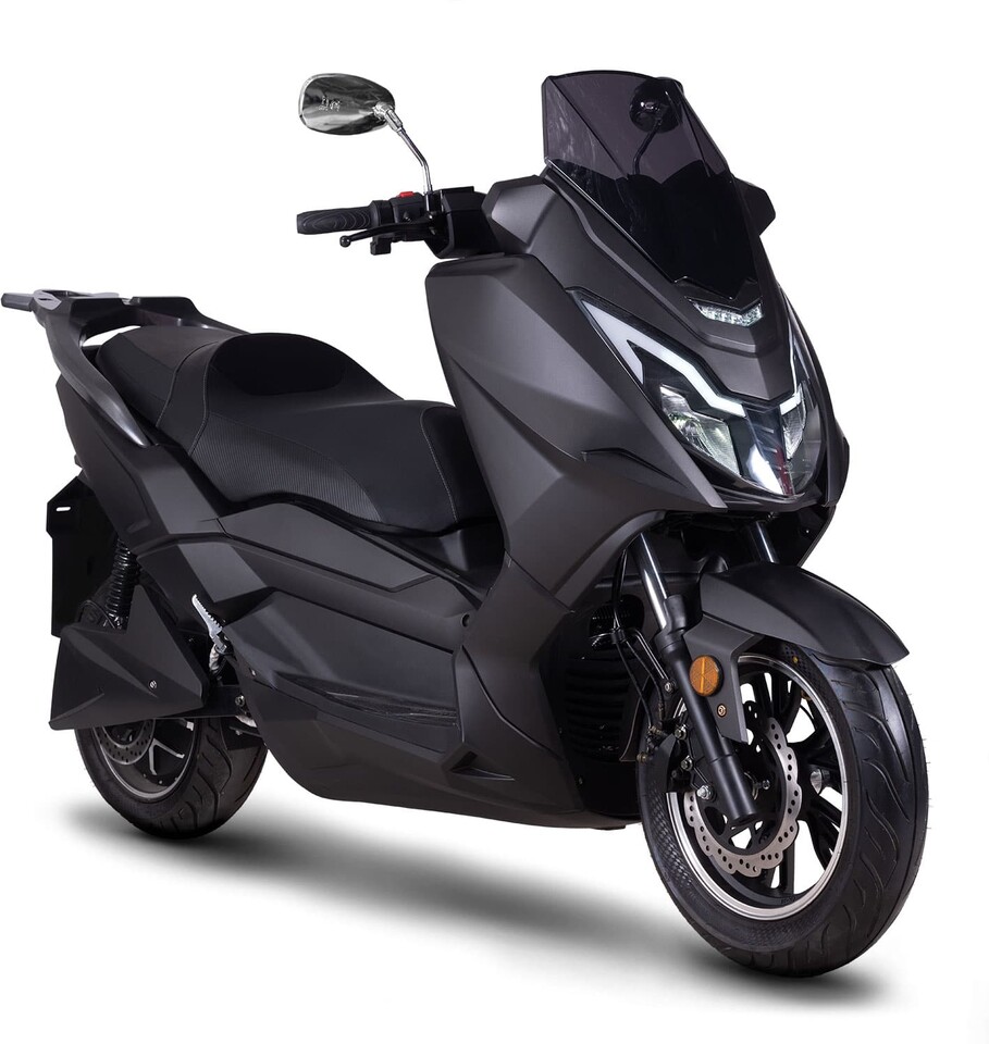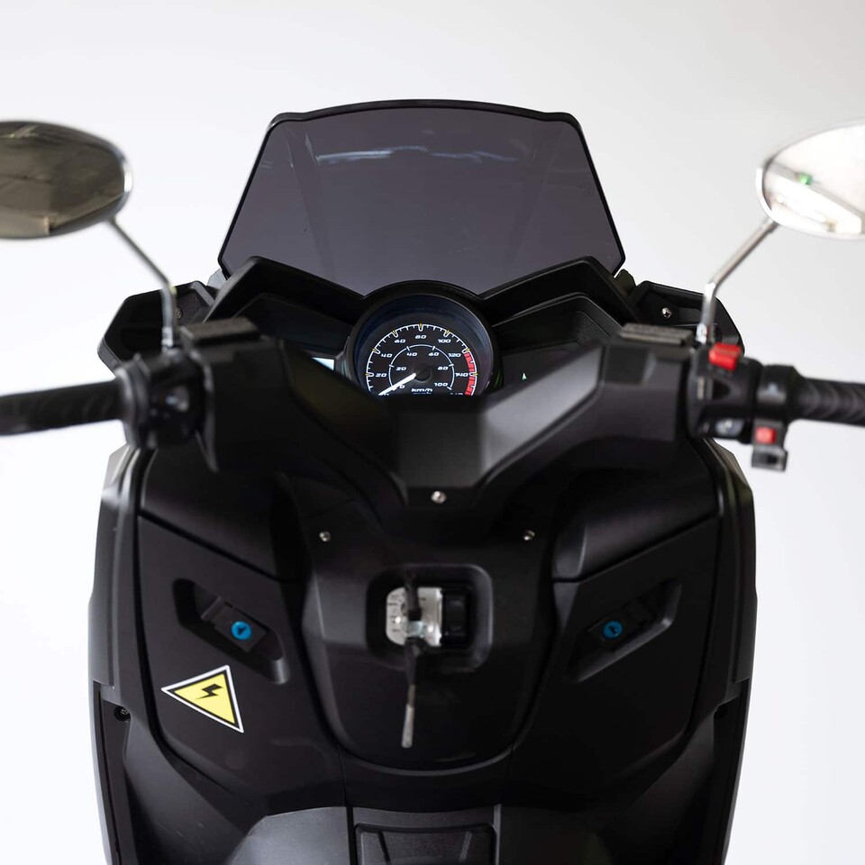 Der Roller verfügt über einen leistungsstarken 8’000 Watt Elektromotor mit einer Höchstgeschwindigkeit von 120 km/h.