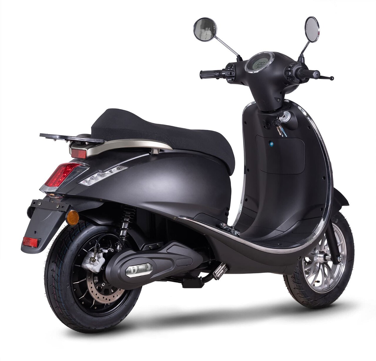 Der Roller verfügt über einen leistungsstarken 3’000 Watt Elektromotor mit einer Höchstgeschwindigkeit von 45 km/h.