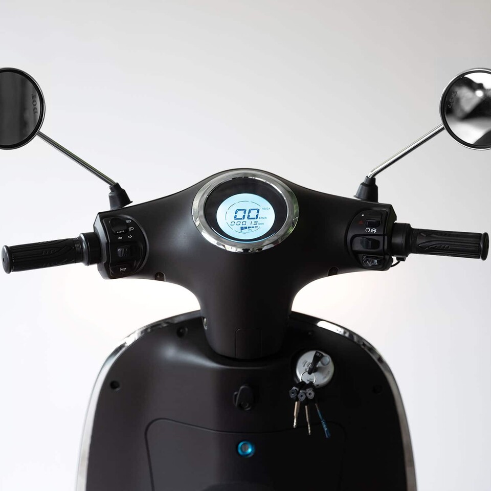Der Roller verfügt über ein digitales Armaturenbrett.