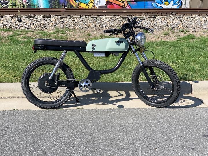 Der Huck Cycles Stinger 3000 ist ein handgefertigtes Nutzfahrzeug Elektrisches Moped des amerikanischen E-Mofa-Startups Huck Cycles. Das Unternehmen spezialisiert sich auf maßgeschneiderte Mofas und bietet einen "Gestalte dein Bike" Service.