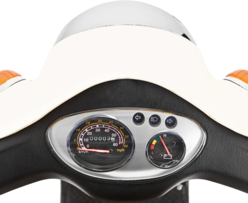 Der Roller ist mit drei Lithium-Batterieoptionen erhältlich und ermöglicht eine Reichweite von bis zu 240 km. Die Ladezeit der Batterie beträgt 180 Minuten.
