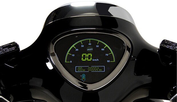 Der Roller bietet eine Kapazität von bis zu drei abnehmbaren Batterien für eine Reichweite von bis zu 150 km.