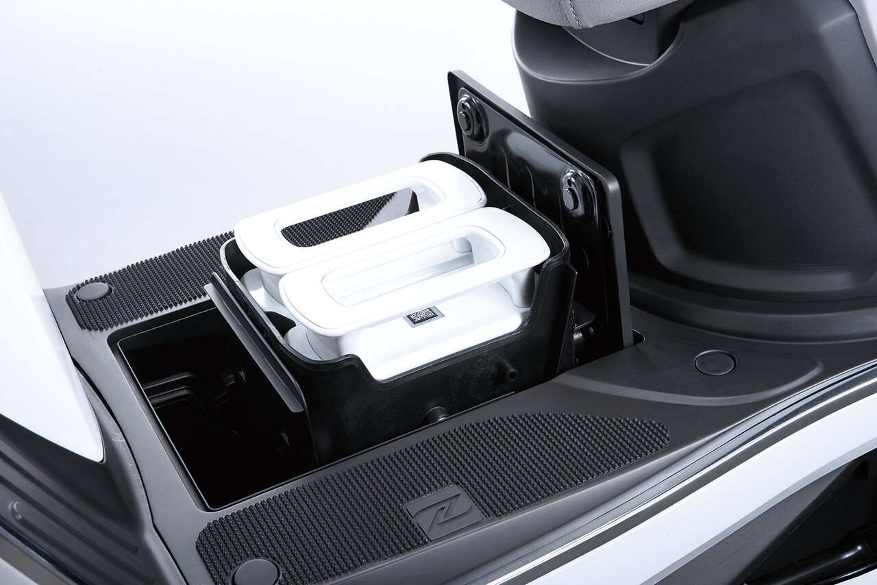 Die größte Innovation des Rollers ist das Batterieladesystem namens Ionex. Das System hat die Devise „nie warten" und bietet zahlreiche Lademöglichkeiten: Leere Batterien können in wenigen Sekunden getauscht, kostenlos in nur 1 Stunde an einem großen Netzwerk öffentlicher Ladestationen wie Restaurants, Cafés und Geschäften geladen, der Roller an einer normalen Wandsteckdose aufgeladen oder die Batterien bequem per drahtlosem Ladegerät zu Hause geladen werden.