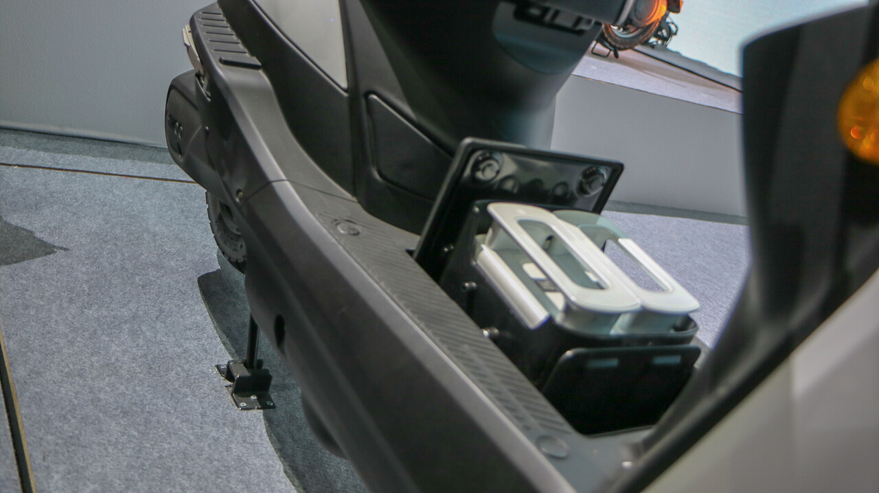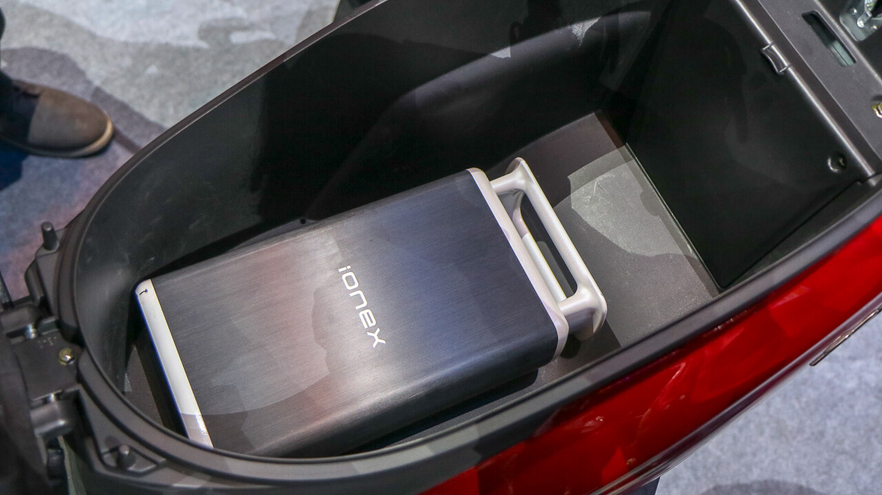 Die größte Innovation des Rollers ist das Batterieladesystem namens Ionex. Das System hat die Devise „nie warten" und bietet zahlreiche Lademöglichkeiten: Leere Batterien können in wenigen Sekunden getauscht, kostenlos in nur 1 Stunde an einem großen Netzwerk öffentlicher Ladestationen wie Restaurants, Cafés und Geschäften geladen, der Roller an einer normalen Wandsteckdose aufgeladen oder die Batterien bequem per drahtlosem Ladegerät zu Hause geladen werden.