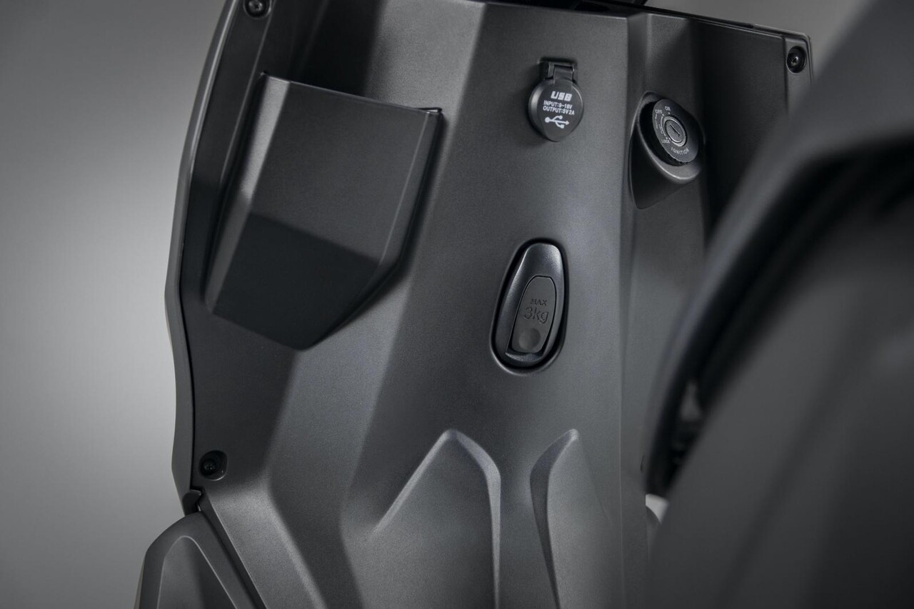 Der Roller verfügt über ein digitales Armaturenbrett, bietet Stauraum und USB-Ladeanschlüsse für ein Mobiltelefon.