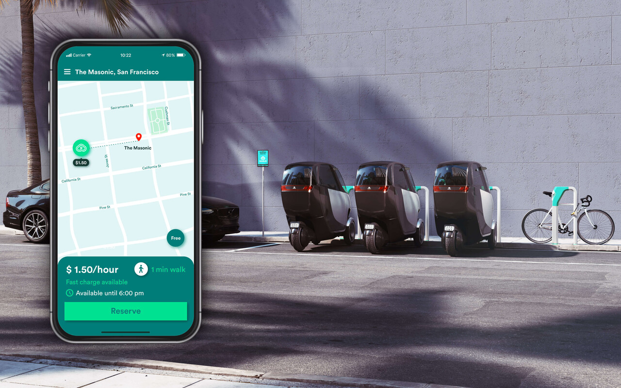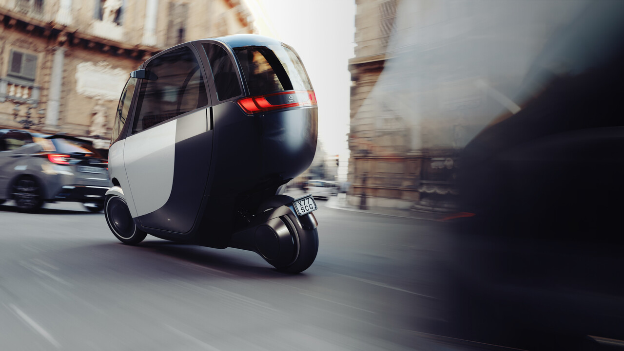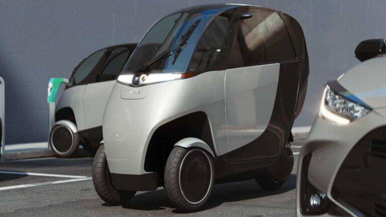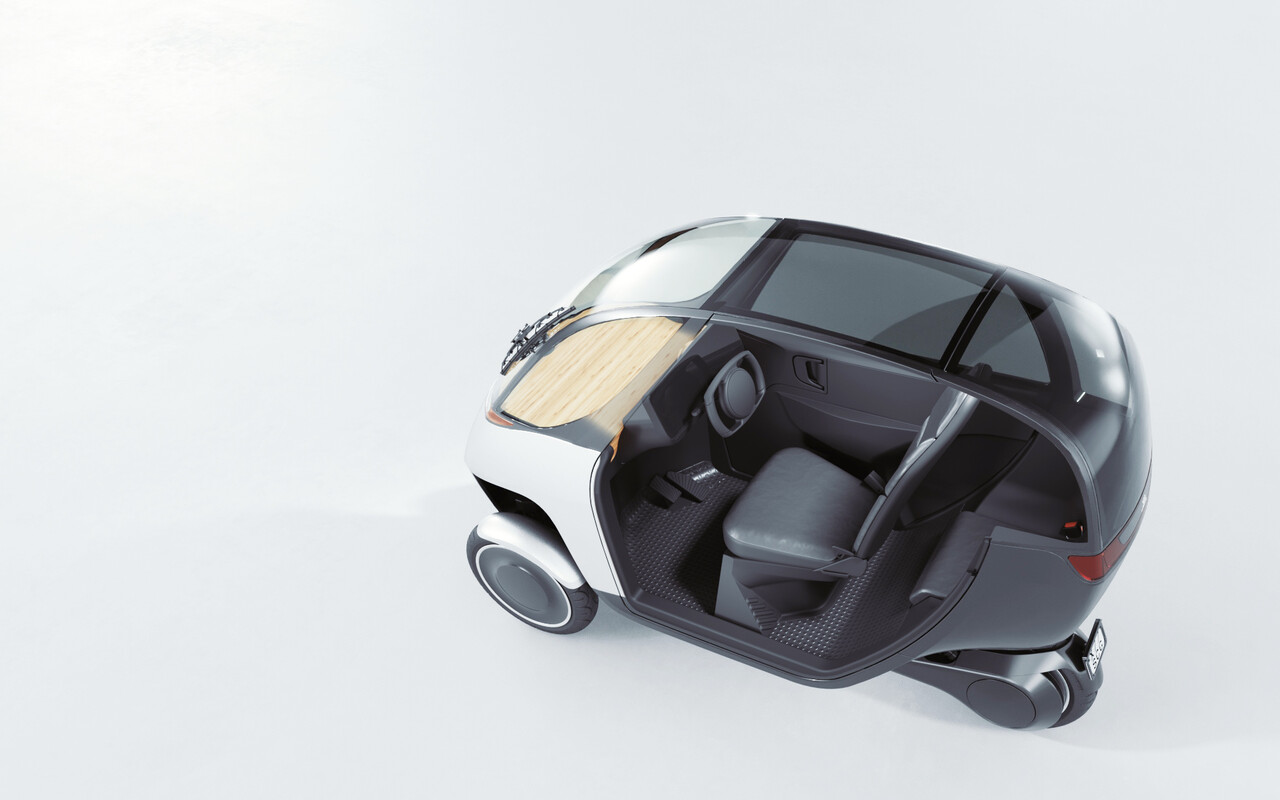 Das Fahrzeug ist 81 cm breit und weniger als halb so breit wie ein Smart. Es kann auf einem Motorradparkplatz geparkt werden.