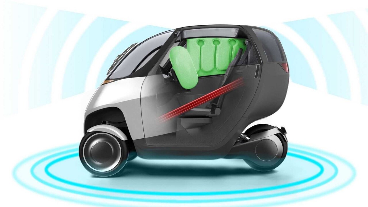 Der Roller-Wagen verfügt über einen leistungsstarken Elektromotor für eine Höchstgeschwindigkeit von 145 km/h. Das Fahrzeug beschleunigt von 0 bis 97 km/h in 3.7 Sekunden.