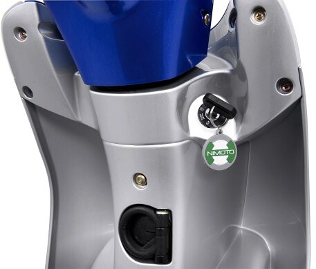 Der Roller ist mit zwei Batterieoptionen erhältlich: Blei-Säure und 30 Ah Lithium. Beide Batterien sind abnehmbar und können separat vom Roller aufgeladen werden.