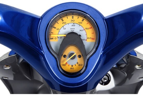 Der Roller verfügt über einen Gepäckhaken und einen Topcase. Der Roller hat einen Powerknopf für zusätzliche Beschleunigung.