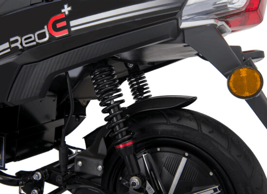 Der Roller verfügt über ein innovatives Kinetisches Energierückgewinnungssystem (KERS) oder regeneratives Bremssystem, bei dem die Bremsenergie zurück in den Akku geleitet wird.