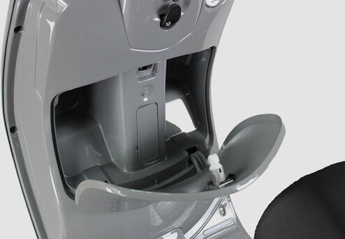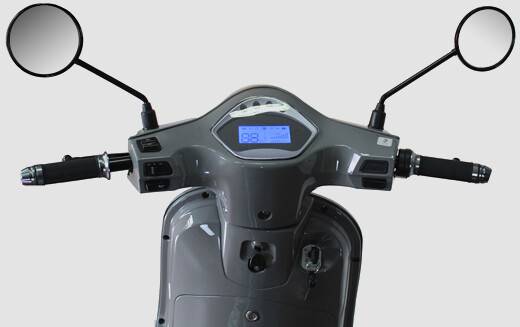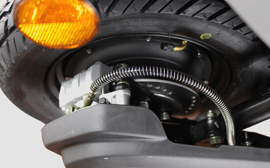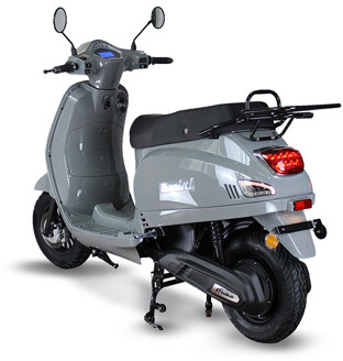 Der Roller hat zwei herausnehmbare Lithiumbatterien mit einer Reichweite von 100 km. Die Batterien sind von hoher Qualität und entsprechen dem Batterietyp des Tesla Model S.