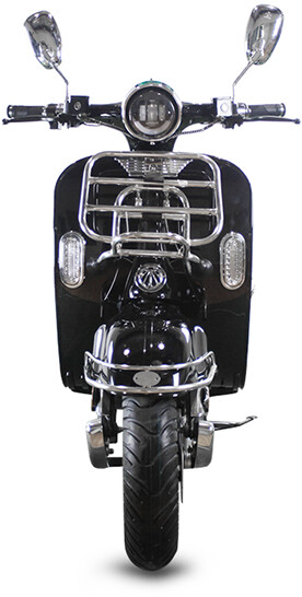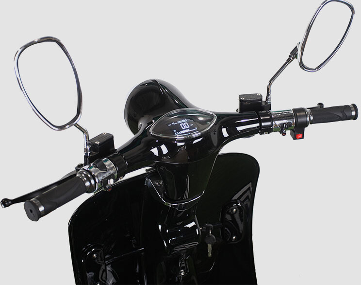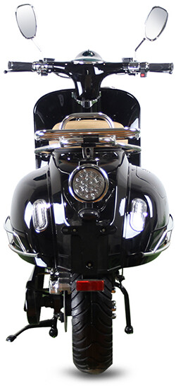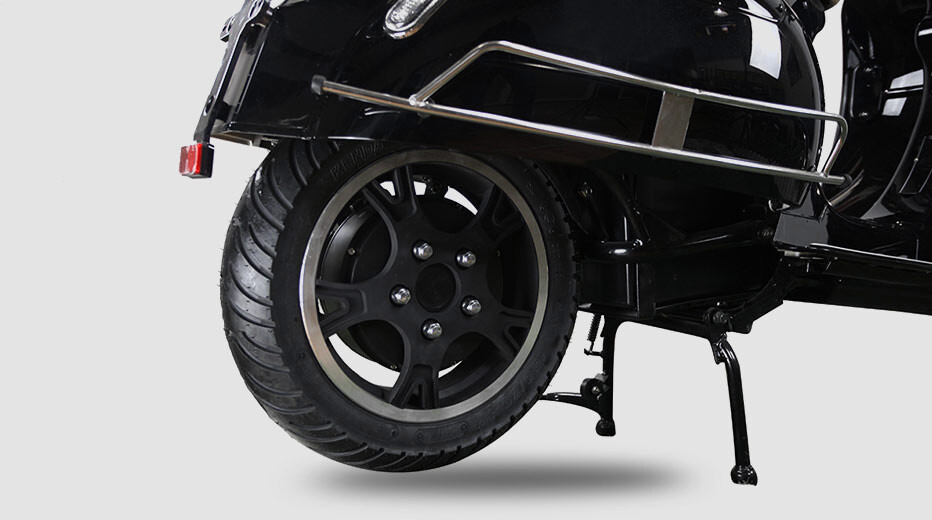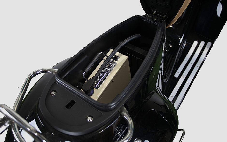 Der Roller hat zwei herausnehmbare Lithiumbatterien mit einer Reichweite von 100 km. Die Batterien sind von hoher Qualität und entsprechen dem Batterietyp des Tesla Model S.