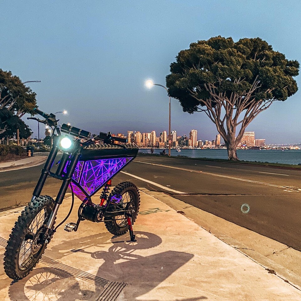 Das Mofa verfügt über aufwendige LED-Beleuchtung und anpassbare, lasergravierte Acryl- und Spiegelseitenteile. Das Mofa ist in 3 anpassbaren Farben erhältlich: Rahmen, Sitz und Seitenteile.