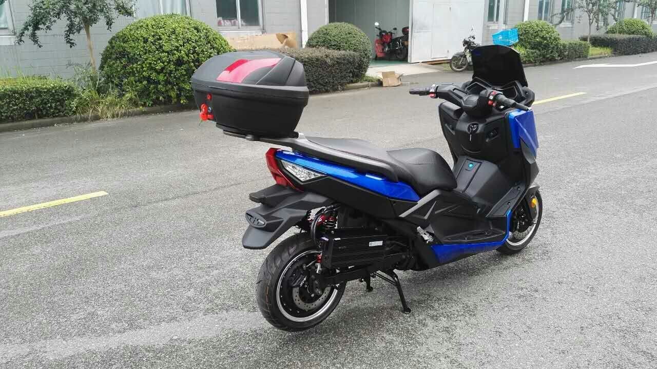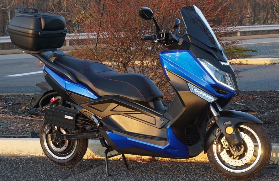 Der Scooter ist mit einer 60 Ah Lithium-Batterie ausgestattet und hat eine Reichweite von 130 km.