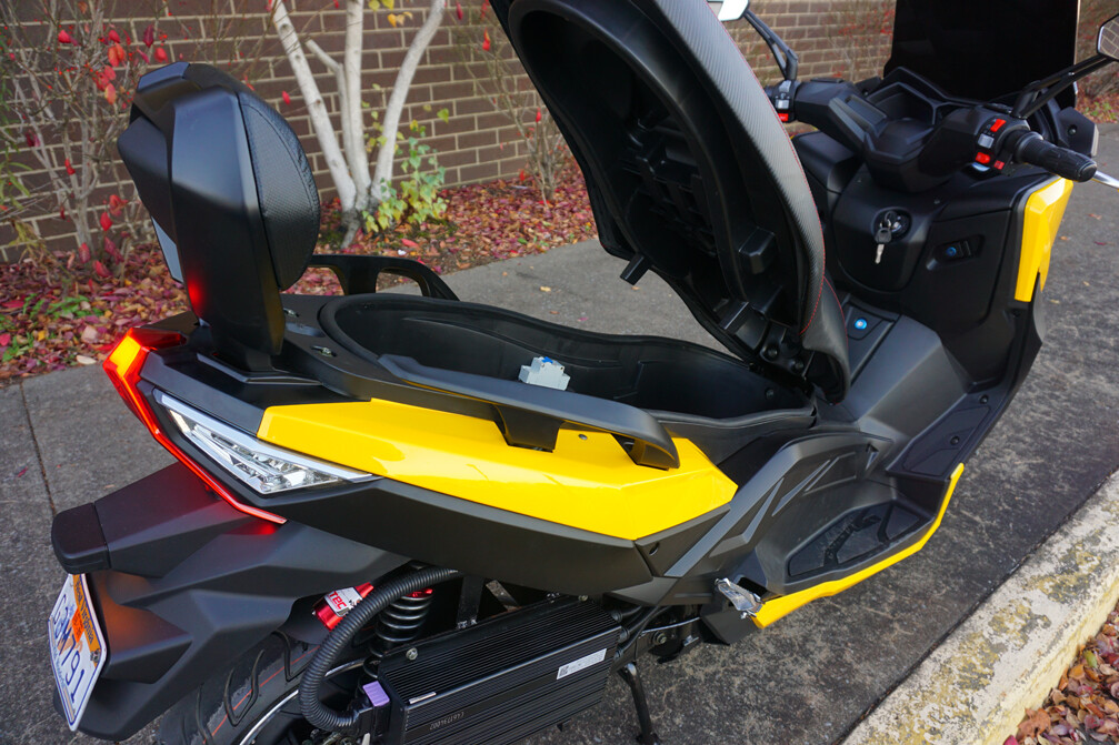 Der Roller verfügt über einen 6’100 Watt (7’000 Watt Spitzenleistung) Elektromotor mit einer Höchstgeschwindigkeit von 101 km/h.