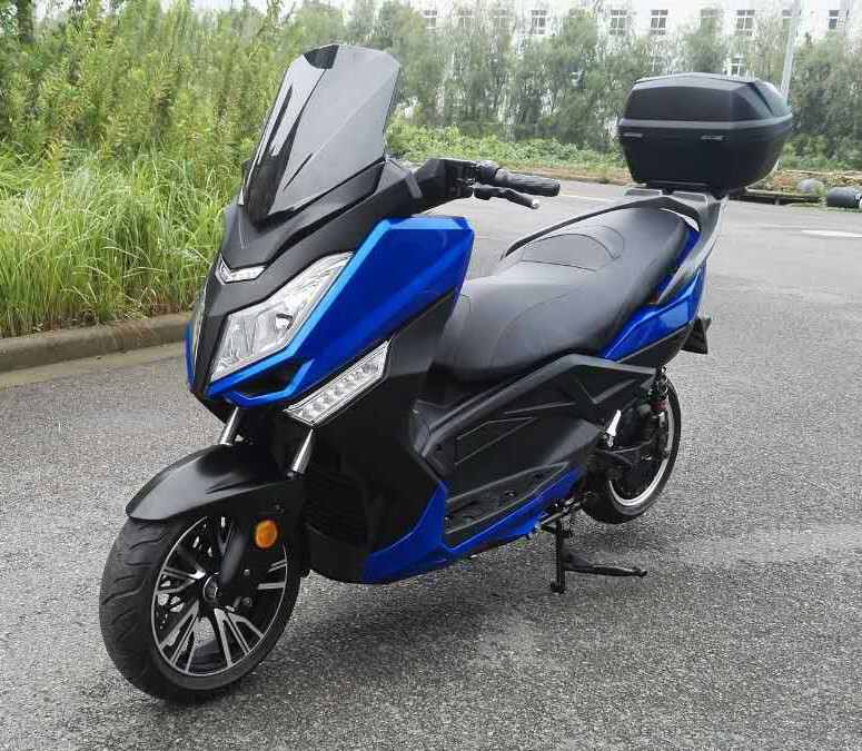 Der Scooter ist mit einer 3.8 kWh Lithium-Batterie ausgestattet und hat eine Reichweite von 115 km.